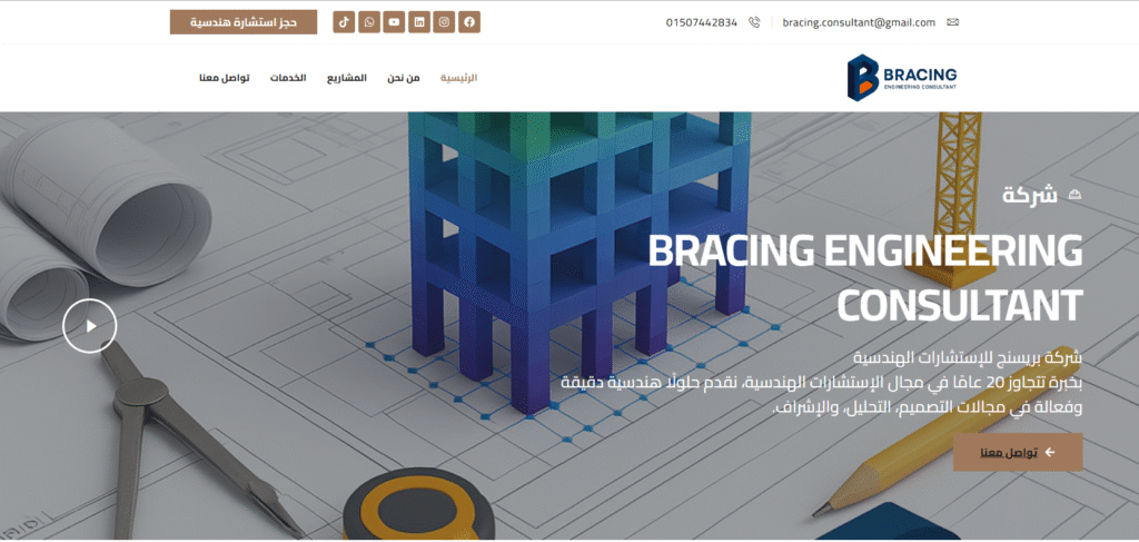 Bracing Engineering Consultant هي شركة إستشارات هندسية متخصصة تقدم حلولًا متكاملة في مجالات التصميم، الإشراف، وحصر الكميات بمختلف التخصصات الهندسية (الإنشائية، المعمارية، الكهربائية، والميكانيكية).